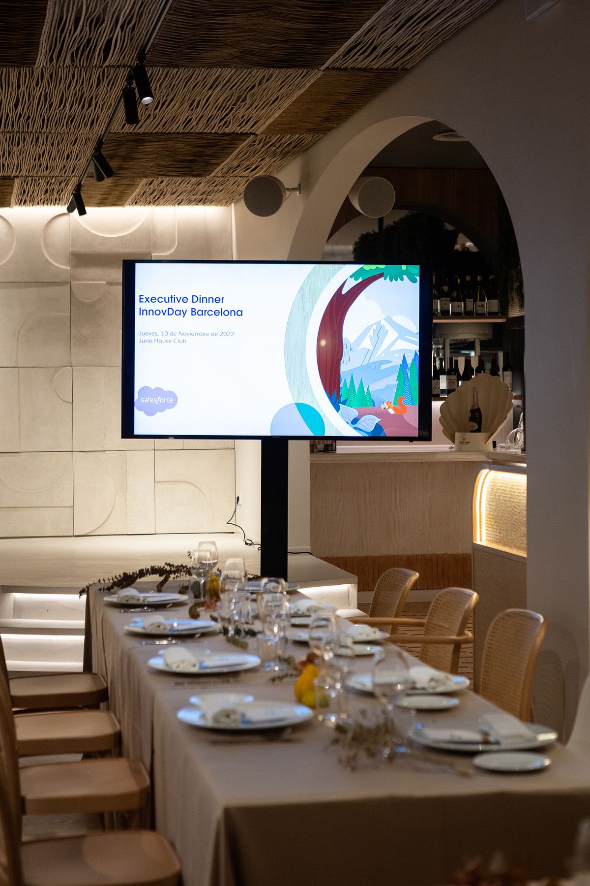 La cena organizada por Sales Force, Executive Dinner InnovDay Barcelona, se hizo en Juno House y terminó con un espectáculo de magia de la mano de Jorge Luengo.